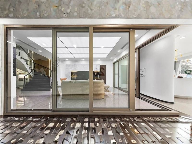 Nên ưu tiên các hệ cửa đi lùa nhiều cánh hoặc xếp trượt để tạo sự liền mạch, không gian mở tối đa, dễ kết hợp với kính cường lực và phụ kiện hiện đại.